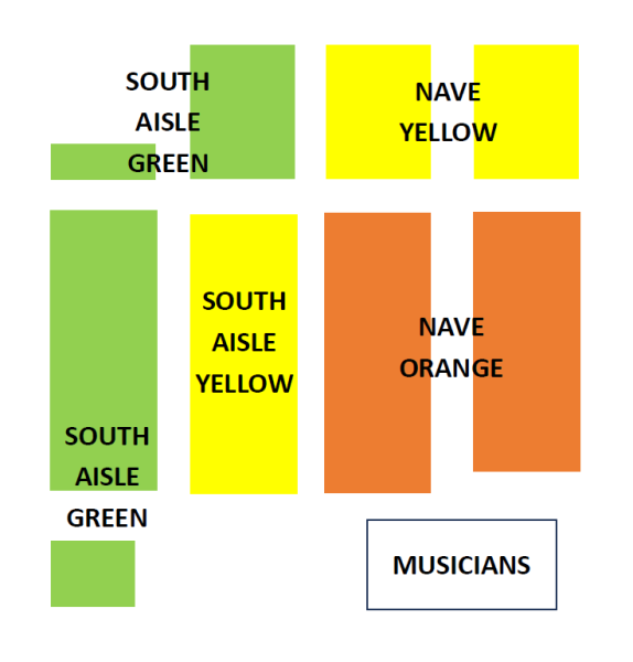 Tickets for this concert are priced according to the seating plan shown below. In each section seating is unreserved and will be allocated on a first-come-first-seated basis.